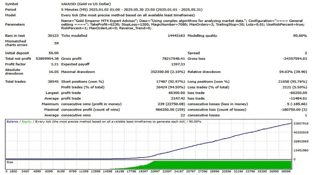 Gold Emperor EA is an automated Expert Advisor created for trading XAUUSD (Gold) on the MetaTrader 4 platform. It focuses on managing trades based on gold’s unique price behavior, including high volatility and reactions to global economic events, with an emphasis on controlled risk and structured trade execution.