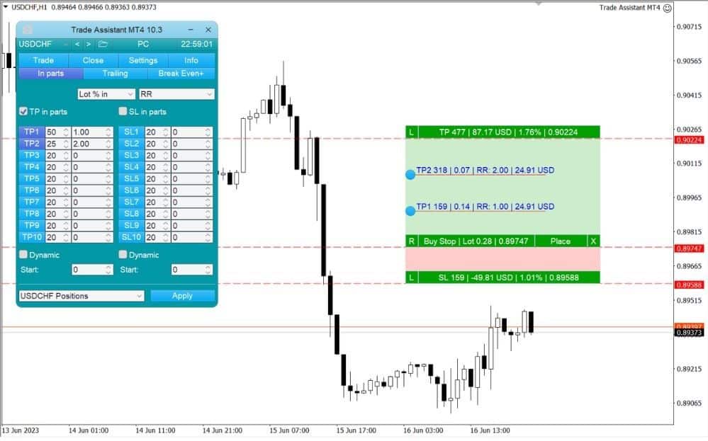 Trade Assistant EA is a versatile trading utility developed by Evgeniy Kravchenko, designed to streamline order management and enhance the efficiency of manual trading within the MetaTrader 4 platform. This tool facilitates risk calculation per trade, simplifies the installation of new orders, supports order management including partial closing functions, and includes seven types of trailing stops, among other beneficial features. Over time, it has garnered widespread popularity and has become an indispensable resource for traders across all skill levels.